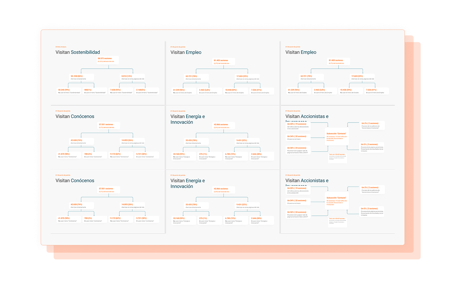 El estudio reveló una clara preferencia por el acceso directo a secciones específicas, motivado por necesidades concretas o búsquedas orientadas. También se identificaron áreas del site con baja visibilidad, lo que evidenció oportunidades de optimización en estructura y jerarquía de contenidos.